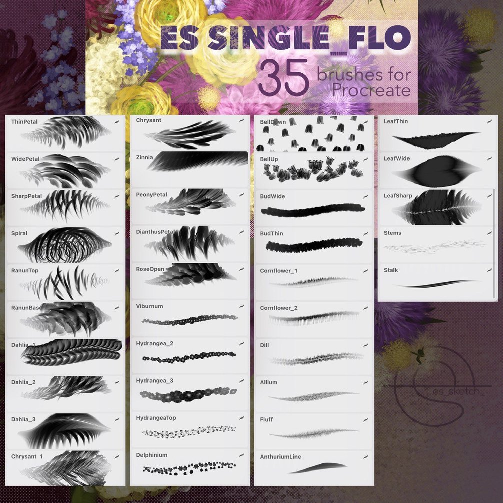 FULL Floral Set - Procreate Brushes for drawing Flowers and Greenery
